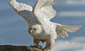 Air Force’s mascot is a white gyrfalcon, similar to this